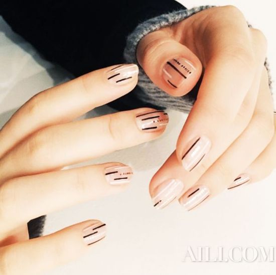 可所以金色、黑色或是白色等简单色彩的线条,搭配裸色、透明的底油。清爽淡雅不复杂,看到都就让人心情势畅。