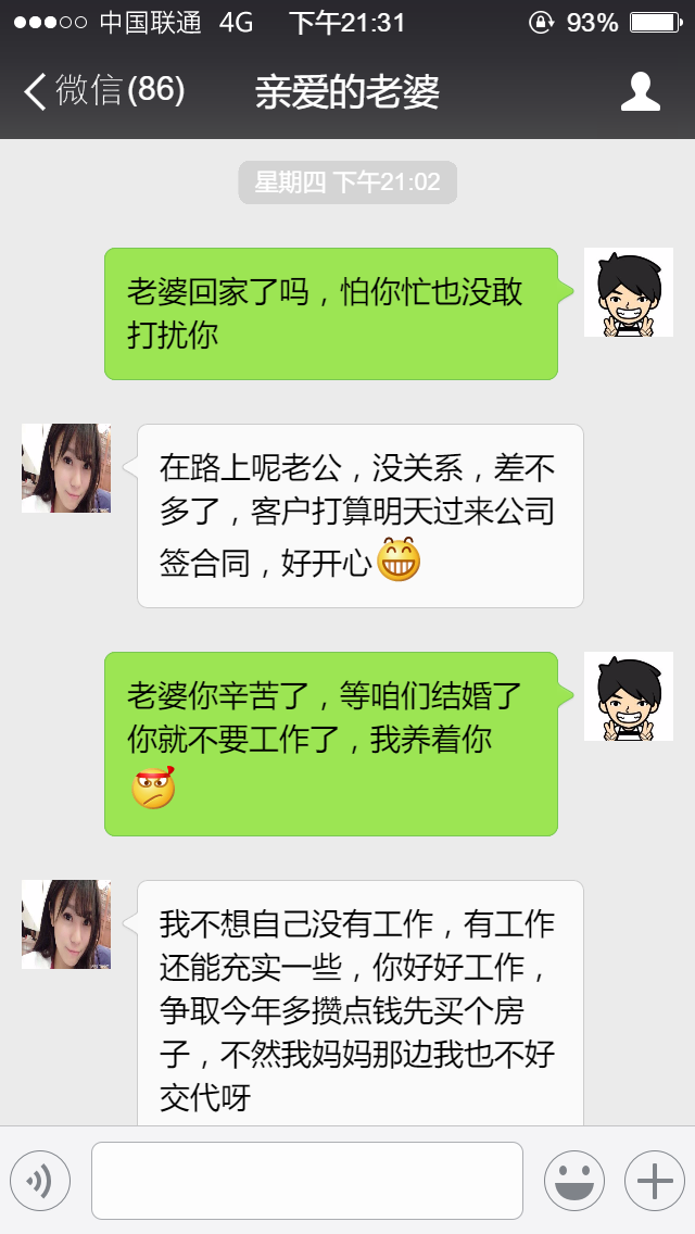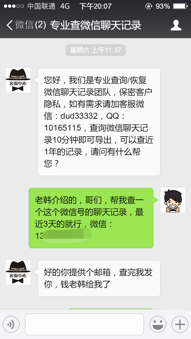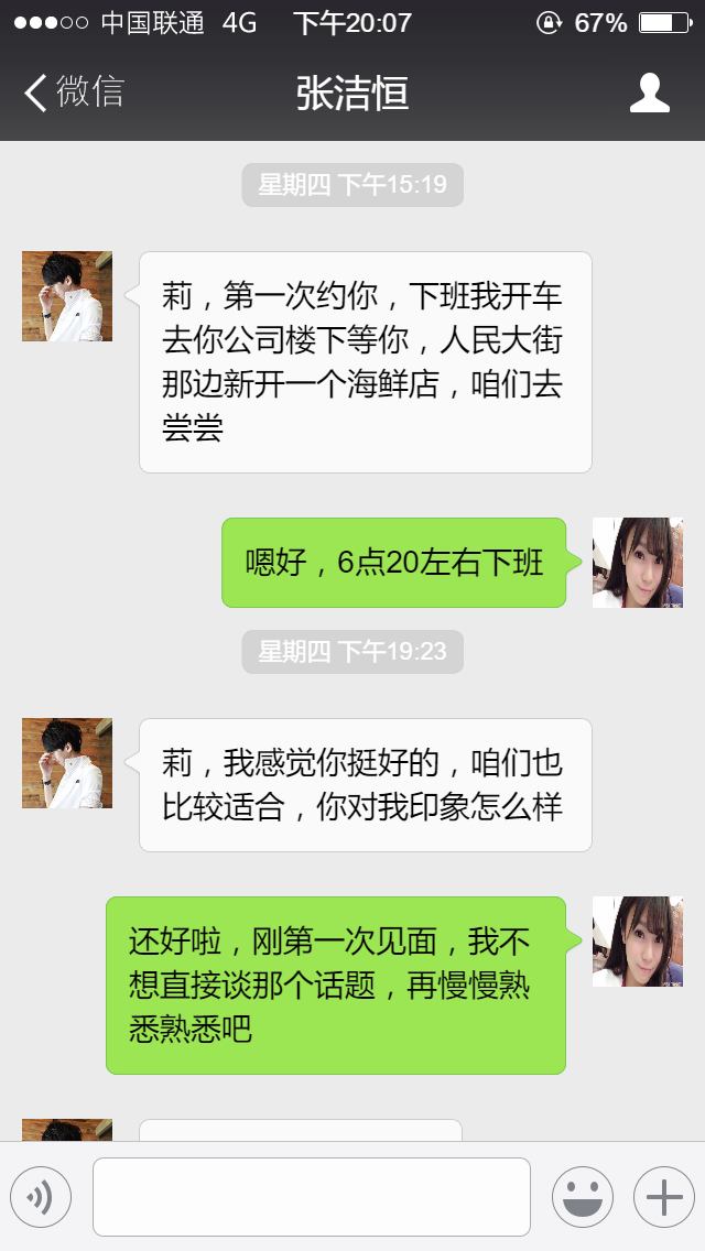 在她屡次拒绝我的邀约后,我感觉是不是我哪里做错了,是不是她生气了,又或者她像我之前的几个女友一样劈腿了,看她这几天对我的态度,越想越不对劲,于是我找到了我发小,我让他给我出主意,他很痛快的答应了,说帮我查她的微信聊天记录,看看她最近在跟谁聊天。
